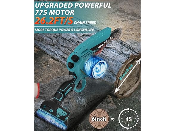 - ✔ UPGRADED 775 High Power Pure Copper MOTOR - Provides your tool with longer run-time, more torque, and more power. Cut through a 6" thick branch in only 4 seconds with this super high chain speed (19 ft/s) just like cutting butter!