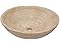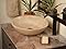 - Round travertine vessel sink, beige tones