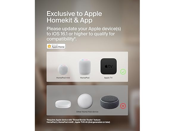 - APPLE HOMEKIT ENABLED: Designed to work with all HomeKit-enabled devices. Build powerful automations and integrate with Homekit scenes for ultimate smart home customization.