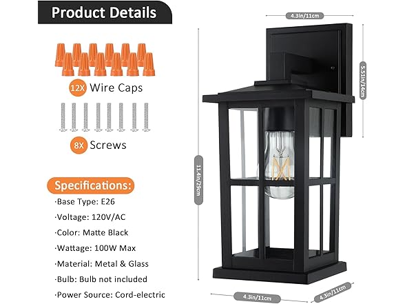 BesLowe 2-Pack Outdoor Light Fixtures Wall Mount