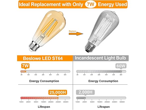 BesLowe B0D9YBNJRH 12Pk ST64 Large Vintage LED Edison Bulbs