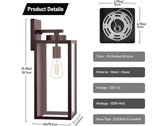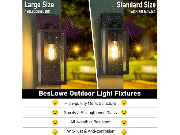 BesLowe Large Size Outdoor Wall Light Fixtures, 2 Pack