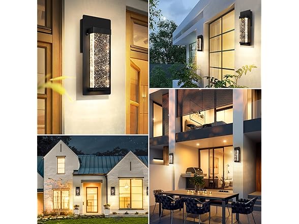 - Stunning Design: Indulge in a captivating ambiance with BesLowe outdoor wall lights, showcasing a minimalist geometric frame in a matte black finish, alongside unique crystal glass adorned with bubble pattern. As the light bends while passing through the glass, it produces a stunning effect reminiscent of a celestial starry sky. Definitely a modern and chic addition to your outside space