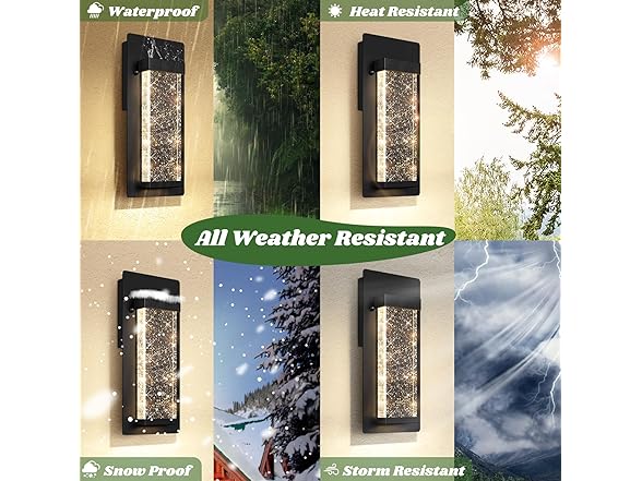- Built to Last: Crafted from premium aluminum framing and a robust rectangular crystal, these outdoor light fixtures assure resilience and resistance against rust and corrosion, maintaining their stylish look for many years. The fully sealed design guarantees their endurance in diverse weather conditions like overcast days, torrential rain, snow accumulation, freezing, and even sweltering heat