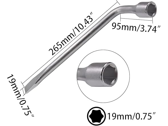 Bettomshin 19mm/0.75inch Car Spare Tire Lug Wrench for Jack, L Type Hexagon Slotted End Socket, Wrench Wheel Wrench Repair Tool for Machinery Carpentry Construction