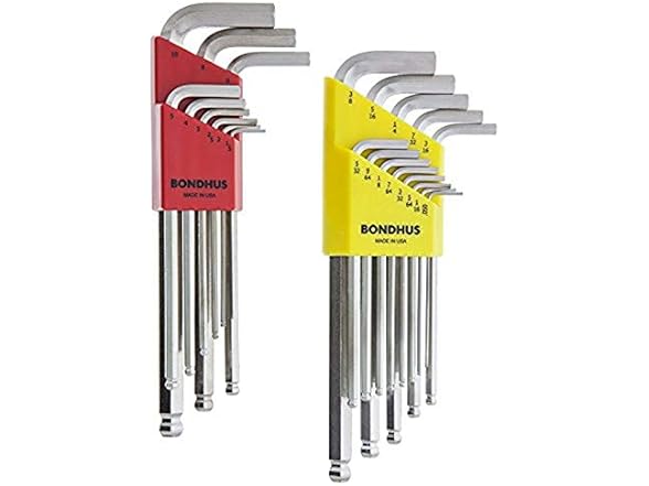 Bondhus 26999 Ball End Tip Hex Key L-Wrench Set w/BriteGuard, 22 Piece
