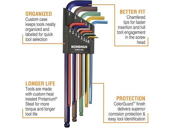 Bondhus 69600 Ball End DoublePK L-Wrench Set w/ColorGuard, 13 Piece