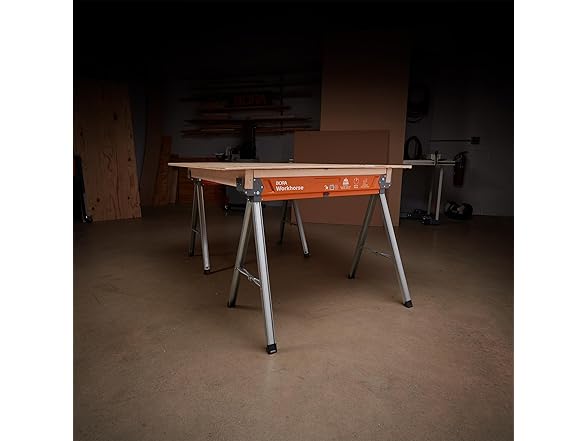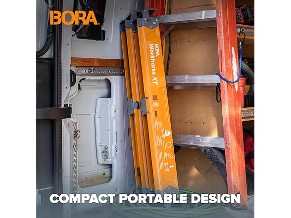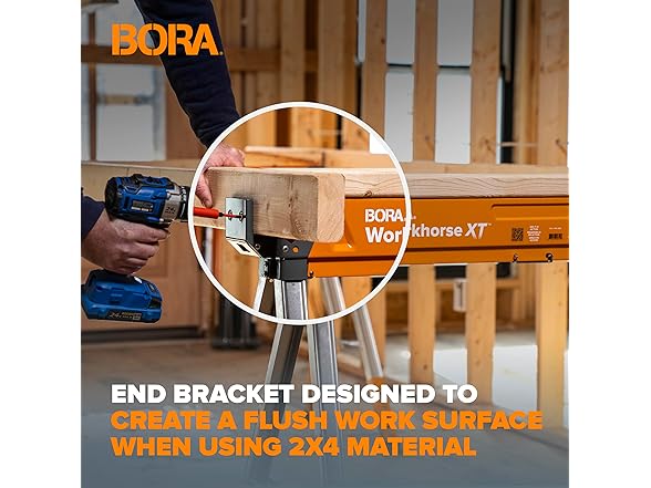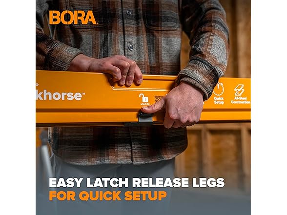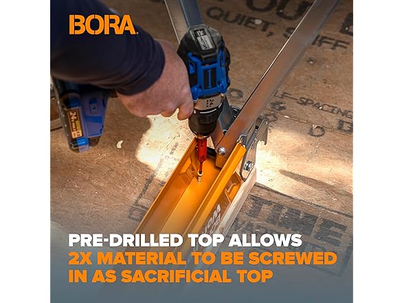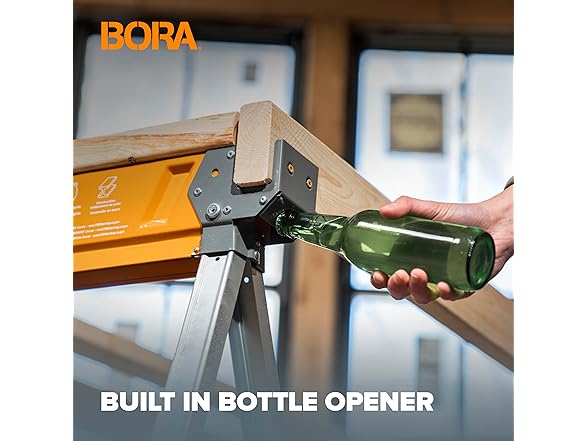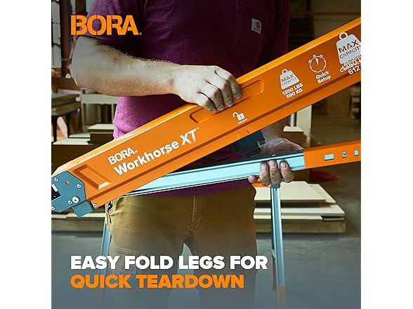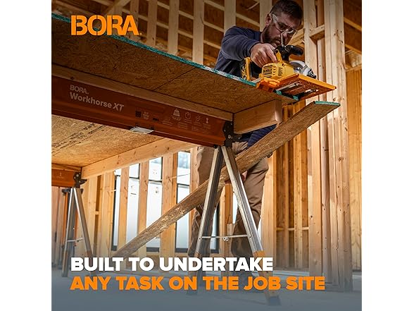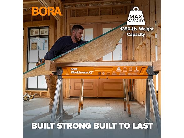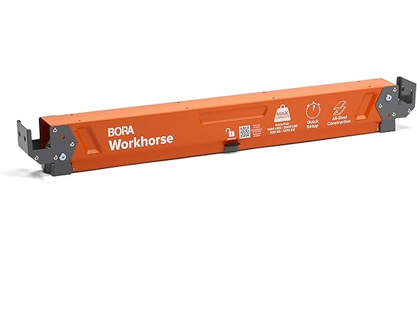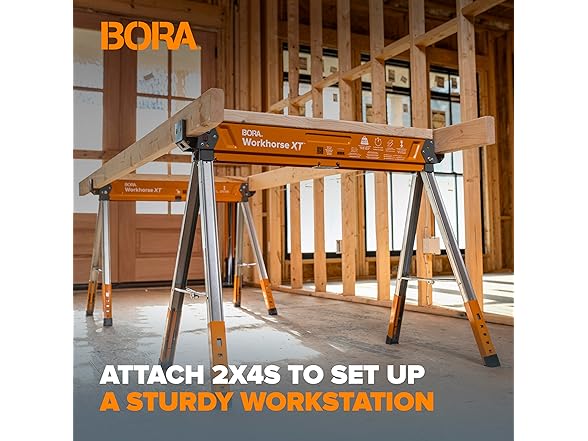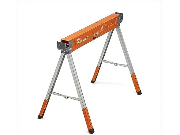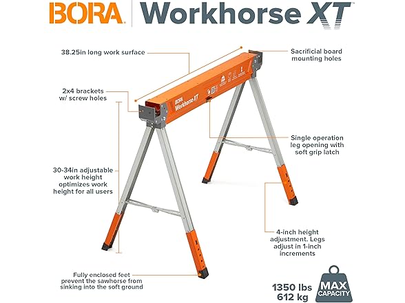 BORA Workhorse XT Adjustable Height Sawhorse - Single Piece Stand with 30-34 inch Adjustable Legs, Metal Top for 2x4, Heavy Duty Pro Saw Horse for Woodworking, Carpenters, Contractors, PM-3360, Orange