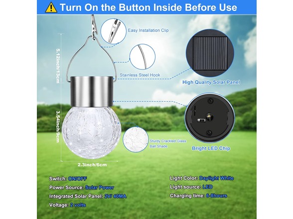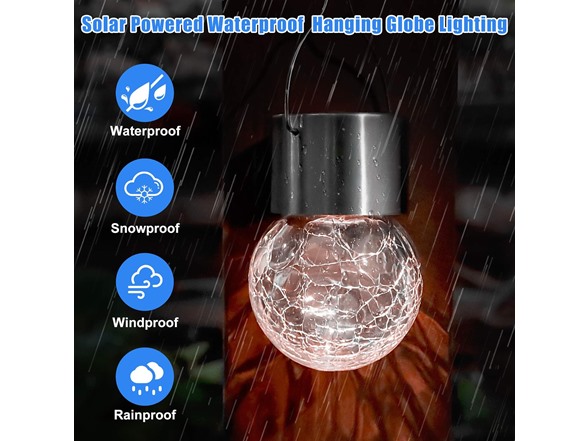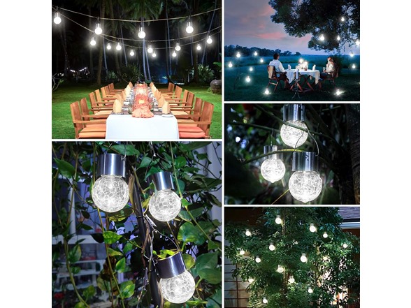 Bosceos 12-Pack Hanging Outdoor Solar Lights, Decorative Cracked Glass, Daylight White