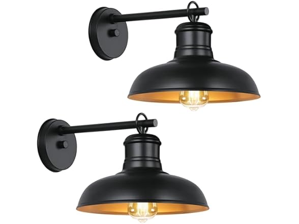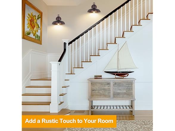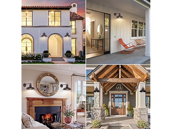 - 【Elegant Design & Premium Quality】These outdoor barn lights feature a distressed brown finish and a classic design that adds farmhouse charm to your home. Made of premium iron, these fixtures showcase classic barn lamp shades supported by sturdy arms, directing light downward for a warm glow. The exquisite distressed brown coating not only provides excellent anti-corrosion and anti-rust protection but also adds timeless elegance, creating a charming ambiance in your space.