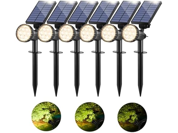 - 【Solar Powered, Cost-Saving & Wireless Design】Featuring a high-efficiency 1.6W polysilicon solar panel with 30% energy conversion, these solar spotlight outdoor charge quickly and deliver consistent, reliable performance - all at 0 energy cost! Each solar light comes with its own individual solar panel, eliminating the need for messy wires and giving you the freedom to install these landscape lights anywhere to light up the garden, yard, pathway, pool, wall, driveway, tree, flag, plant, etc