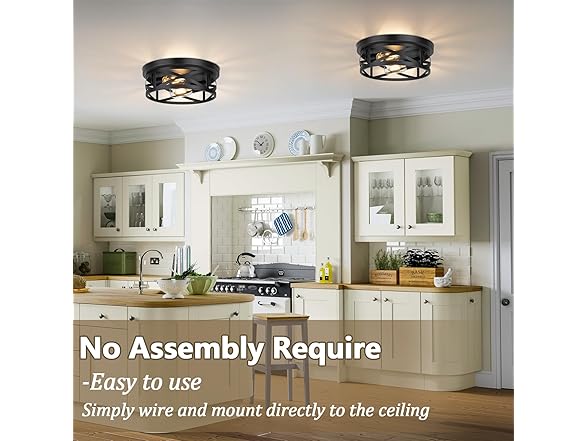 - Wide Applications: Our black flush mount light fixtures feature a unique X-shaped metal cage design that blends the industrial, modern, and farmhouse styles seamlessly. They are a perfect addition to a wide range of indoor spaces, including kitchens, bedrooms, bathrooms, living rooms, dining rooms, hallways, entryways, stairways, porches, children's rooms, attics, and any other spaces you like.