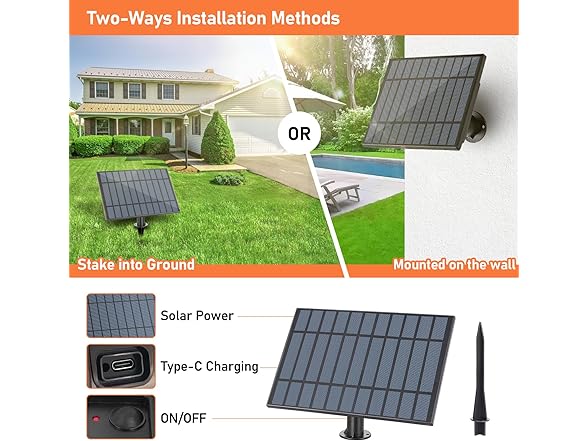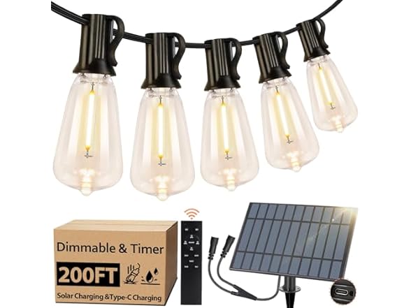 - 【Solar Powered &Type-C Charging】The outdoor solar string lights soak up the sun's energy during the day and automatically turn on at night, requiring no electricity. Besides, the extra Type-C charging ports guarantees a productive charging without worrying about continuous rainy days, providing a hassle free using experience. 180 degree adjustable solar panel allows you to change the direction accordingly to get the panel maximum exposed under sunlight to gain a better charging effect.