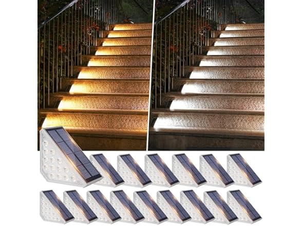 • (1) Bosceos Solar Stair Lights Outdoor Waterproof, Upgraded 2 Color LED