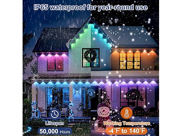 - Designed to Last: These RGB permanent outdoor Christmas lights boast an impressive lifespan of up to 50,000 hours, ensuring long-lasting performance that outshines the competition. Plus, for your peace of mind, we've upgraded the materials, guaranteeing uninterrupted enjoyment of your beautifully illuminated outdoor space. Illuminate your surroundings with confidence and style!
