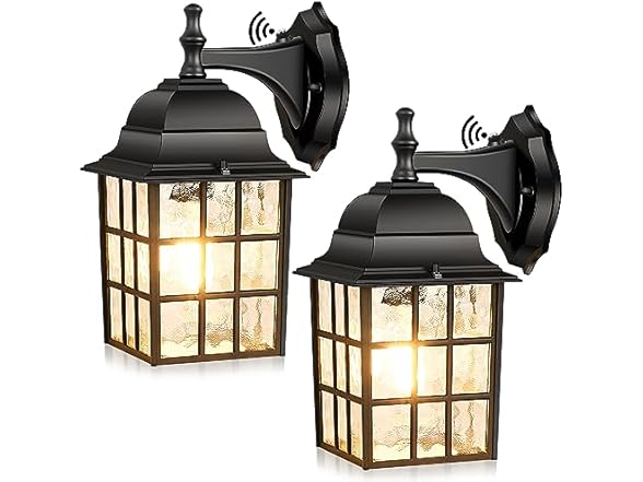 - Sophisticated Dusk to Dawn Photocell Sensor: Adopted with advanced dusk to dawn sensor tech. Our 2-Pack outdoor wall lighting will detect the surrounding brightness sensitively, auto-on at dusk & auto-off at dawn. They’re high-efficiency and energy-saving wall lantern sets which save your electricity bill and remove troublesome steps to turn on/off the outdoor wall lights every morning and night. Simplify your daily life with Brightever fantastic wall sconces