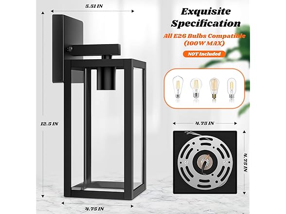 Brightever 2-Pack Outdoor Light Fixtures Wall Mount, Waterproof