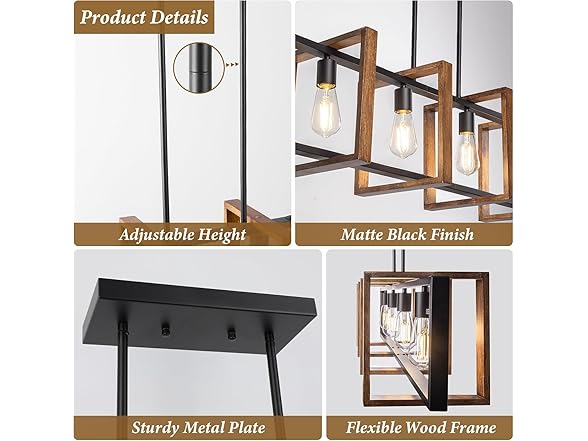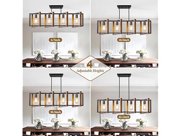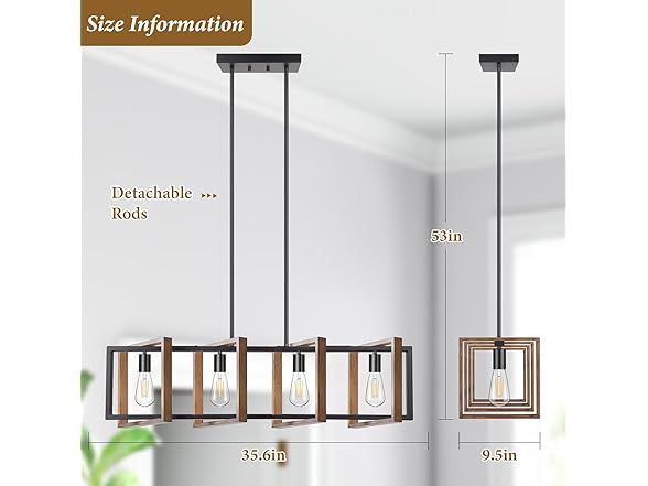 π³πππππ πππ π«πππππ πΉπππ: This 4-Light chandeliers featured with high-quality materials, adds endless farmhouse/rustic/retro/vintage/industrial chic over your dining tables or kitchen islands. The solid but minimalist square framework shaped a high-class kitchen dining light over your dinner tables. Simple open box design makes it no difficult to clean at any time. Excellent additions for your dining room