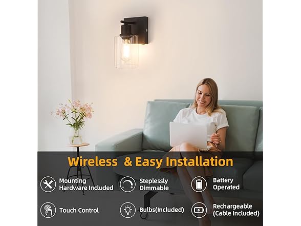 - Easy Installation & Versatile Applications: The package includes all necessary accessories, making the installation process simple and quick. Within a few minutes, you can install our rechargeable wall lamp and have it ready for use at any time. At the same time, these wall light fixtures are suitable for various areas, such as porches, doorways, bedrooms, and living rooms, as well as places such as cafes and hotels