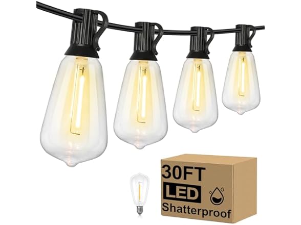 - Higher Quality and Lower Costs - These 30ft outdoor string lights are equipped with our upgraded heavy-duty wires and 16 shatterproof Edison bulbs, which can be easily connected up to 50 strands. You can place them in a small erea without frequent replacements. With a lifespan of over 30,000 hours, our energy-saving string lights will not only provide brighter lighting but also cut down on your electricity bills by 90% compared to incandescent ones.