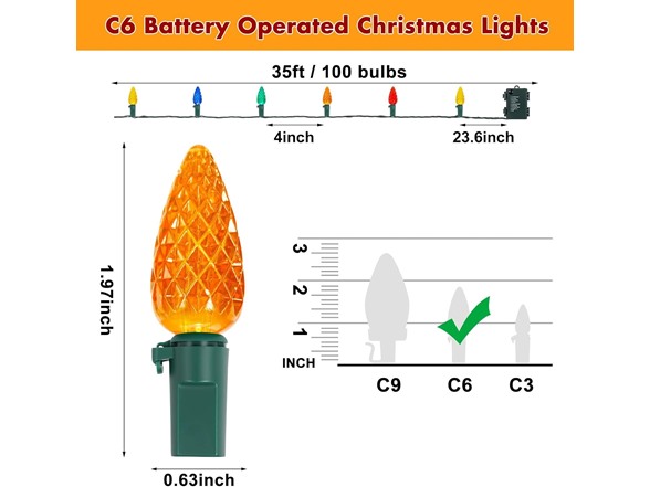 - Widely Used & You Have Brightever’s Words: These C6 or C3 LED Christmas Lights can be used on wreaths, windows, fireplaces, gardens, lawns, walls, eaves, yards, rooms, shopping malls, cafes, weddings, birthdays, parties, etc. Drape them on your patio, weave through trees, or line railings to instantly transform any space with a festive colorful glow. Also, we proudly stand behind all of our products 100% and care every feedback of you and cherish every time to make you a perfect purchase experience