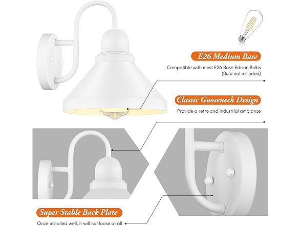 Brightever Gooseneck Outdoor Wall Lanterns, Pack of 2