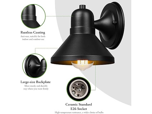 - 【Wide Application & Idea Gift】Our wall lights are suitable for indoor and outdoor applications, such as sign lighting, barn lighting, gazebo, front porch, patio, and garage, keeping you safe from the darkness. They are also ideal gift choices for your family or friends on special days.