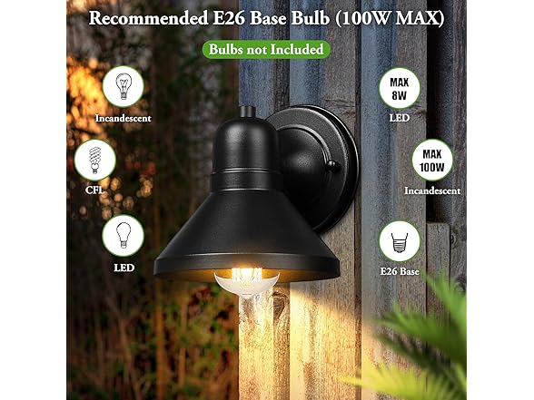 - 【Illuminate as You Like】It’s necessary to match the lighting effects with the space. These 2-pack wall-mounted lights are compatible with different kinds of E26 base bulbs(Not included). Led bulbs(8W Max) are suitble when you need high brightness and low costs. Incandescent bulbs(100W Max) could help more when you need ambient lighting.