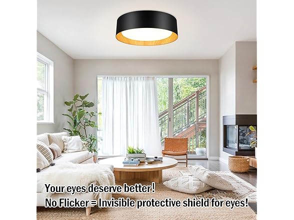- 【Built-in LED Light Source & Eye-caring】 The flush mount ceiling light comes with a built-in LED panel, so you don't need to purchase light bulbs separately. It uses only 25W (300W equivalent) to provide brightness up to 2600 Lumens. An excellent replacement to traditional light for it emits an even and bright glow while saving you a lot on electricity bills. And this ceiling light fixture does not flicker, glare or buzz when on, effectively protecting you and your family's eyes and reducing eye fatigue.