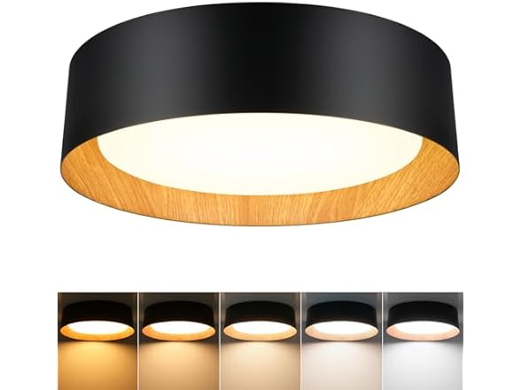- 【Modern & Minimalism Design】Featuring black round frame and wood interior, this flush mount light plays a finishing touch effect for your room even when it's off. The 3.5-inch thickness is ideal for low ceilings, giving you a better view of your space while keeping it cleaner and crisper.