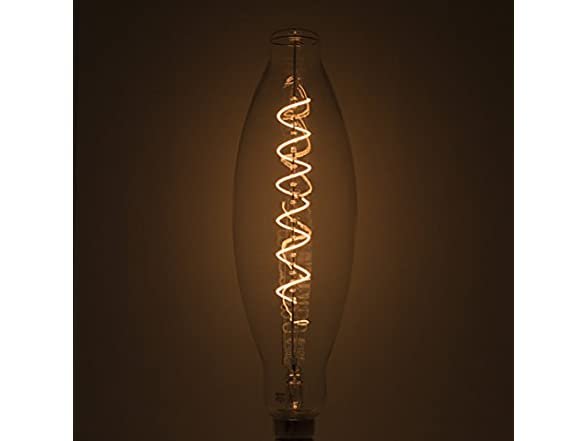 - SPECIFICATIONS: This package comes with a single spiral filament LED bulb. The bulbs themselves are made of clear glass and designed with an olive shape. Each bulb is just 4 watts but produces the equivalent of a 60 watt incandescent bulb. Add a designer vibe with these unique and nostalgic bulbs. Each with an E26 base for medium base fixtures.