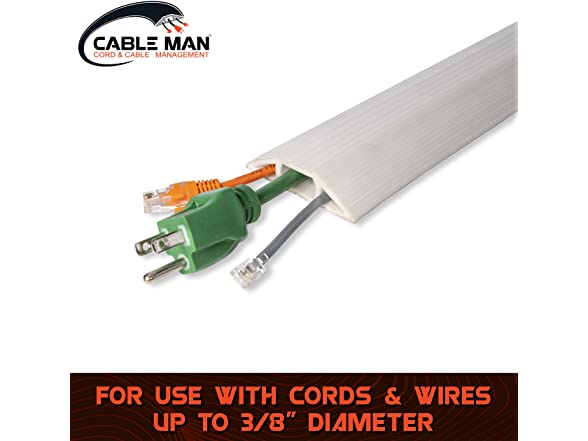 - LOW PROFILE FLOOR CORD COVER - Hide cords and cables in the D-shaped cable sleeve, low enough to safely walk on or roll carts over. The 3-channel raceway holds cords or cables up to 3/8 inch diameter, and can accommodate multiple wires in each