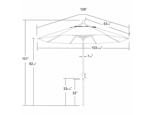 - Construction: Entire frame is made from rust-free all aluminum with stainless steel hardware, 8 ribs for added canopy support with a 1.5-inch diameter aluminum pole providing a stronger more durable frame.