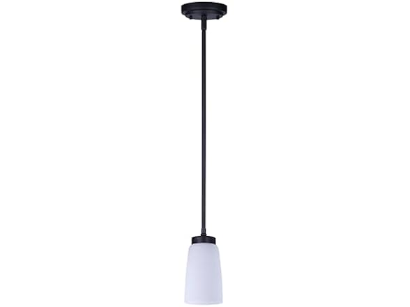 This 1-Light Pendant combines timeless elegance with a refined matte black finish and flat opal glass shade, making it a stylish solution for a variety of lighting needs. Its classic silhouette complements both traditional and contemporary interiors, while the opal glass softens and diffuses the light for a warm, welcoming glow. Ideal for hanging above kitchen islands, hallways, or small dining areas, it accommodates a 60W Type A bulb (not included) for practical and ambient illumination. With a slim 4.75-inch width and an adjustable height up to 58.25 inches, this pendant is both space-conscious and visually striking. Whether installed as a single fixture or in multiples, it adds an understated touch of charm and function.