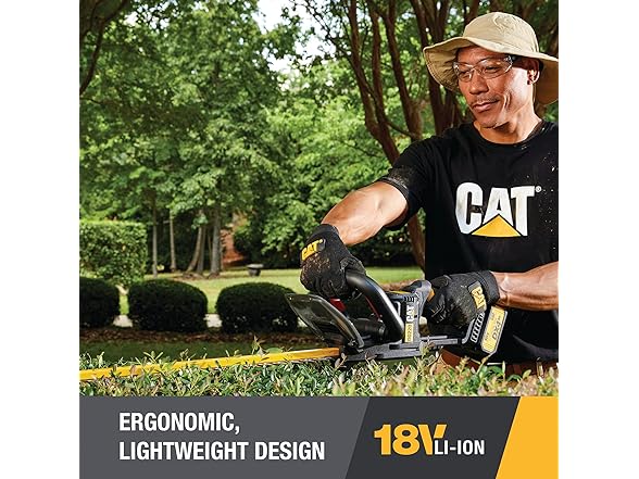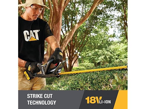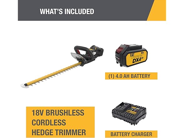 - CORDLESS HEDGE TRIMMER WITH BATTERY AND CHARGER INCLUDED: Included Cat 18V 1 For All battery & charger are compatible with all Cat 18V cordless products. Cat 18V 4.0Ah batteries optimize run time, power output, & cooling—all within a slim design