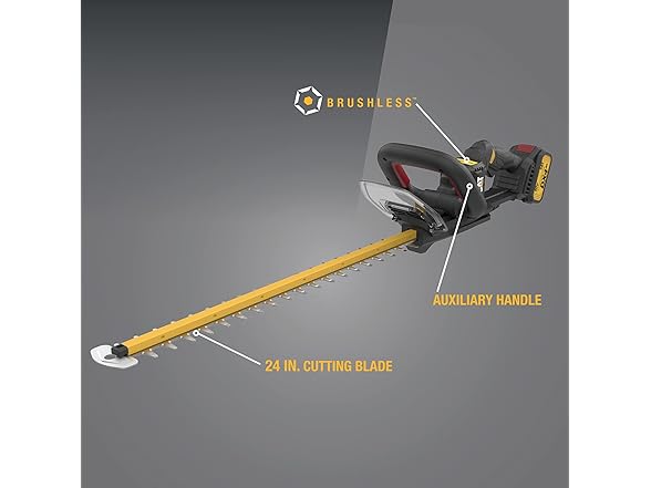 - INCLUDES: 18V 24” Cordless Hedge Trimmer, (1) Safety Guard, (1) Blade Cover, (1) 4.0Ah Battery, (1) 4A Charger