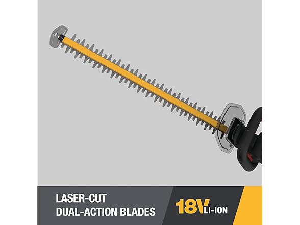 - FAST & CLEAN CUTS: Hedge trimmer is precision crafted with extremely sharp Laser-Cut Dual Action Blades that cut smooth through dense shrubs. Blades have a 1” capacity to easily cut thick branches. 24” extended length is ideal for out-of-reach hedges