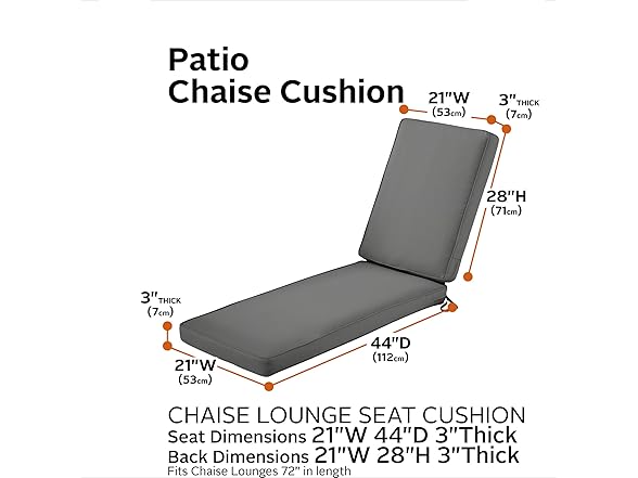 - DURABLE PATIO CUSHION: Cushion measures 72"L x 21”W x 3”Thick