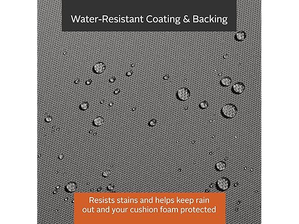 - WATER-RESISTANT COATING AND BACKING: Resists stains and helps keep rain out and your cushion foam protected