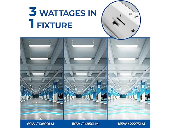 CINOTON 2FT 165W/110W/80W LED Shop Light with 22275LM, 0-10V Dimmable Linear High Bay Lighting, 120-277V Power Tunable Commercial Hanging Lights for Garage Office Warehouse Workshop UL Listed 2 Pack