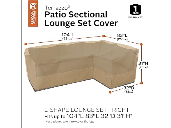 Classic Accessories Terrazzo Water-Resistant 104 Inch Patio Left-Facing Sectional Lounge Set Cover