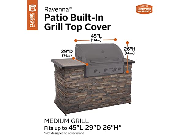 Classic Accessories Ravenna Water-Resistant 45 Inch Built-In BBQ Grill Top Cover, Taupe