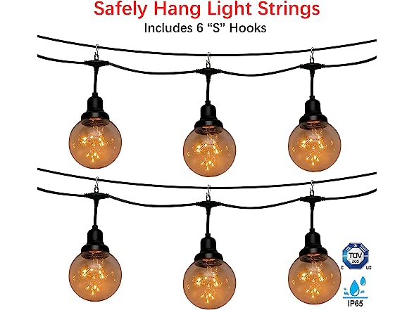 Clear Power 6-Bulb 12ft G125 LED Decorative Outdoor Globe Light String Patio Yard Bistro Waterproof Lighting for Patios, Backyards, Restaurants, Gazebos DC4L-0020-DC