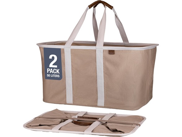 CleverMade Collapsible Laundry Basket 2-pack is a dynamic duo designed to revolutionize your laundry routine and organization needs. It's a versatile solution for toting dirty clothes, organizing space, or optimizing car storage during road trips. Made with the utmost attention to detail, these premium baskets are made with vegan leather accents, feature soft-touch handles for maximum comfort, and are constructed from a premium cotton blend, ensuring durability and a touch of luxury. They come with SnapHinge technology, ensuring swift and effortless opening or collapsing. The sturdy wire frame, solid baseboard, and reinforced steel rim provide a durable structure, while the side handles make for easy carrying. Unfold this pop-up laundry basket with handles to reveal a spacious 50-liter capacity, equivalent to two full loads of laundry. Measuring 22" x 15" x 11.25" when open, this slim, space-saving clothes hamper collapses to less than 2 inches, making it perfect for storage in tight spaces. These collapsible baskets are not limited to laundry but serve as excellent holders for blankets, towels, and linens or as a convenient everyday organizer for home use and travel. Experience the ease of SnapHinge technology and the practicality of a foldable design with our collapsible laundry hamper – your go-to solution for efficient laundry and organization on the go!