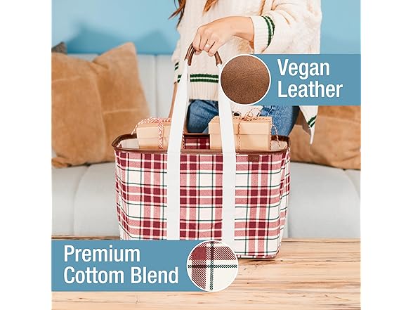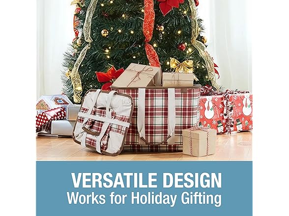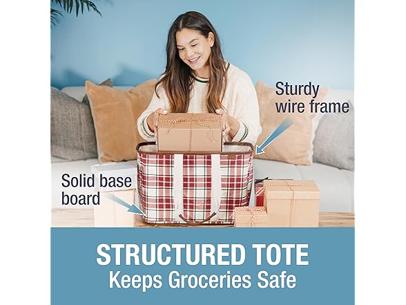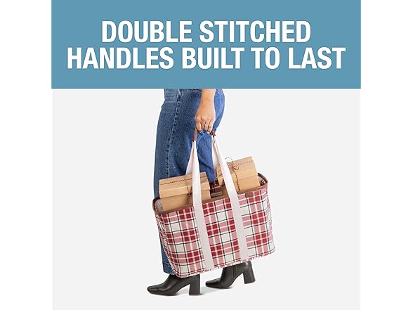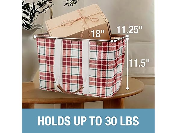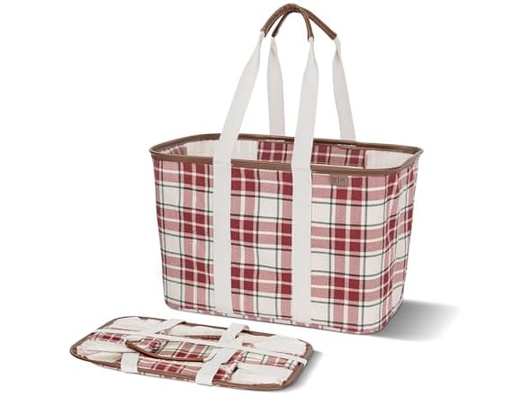 CleverMade Collapsible LUXE Tote - Reusable Grocery Shopping Storage Bag Organizer w/Handles Reinforced Bottom- Tartan Tidings