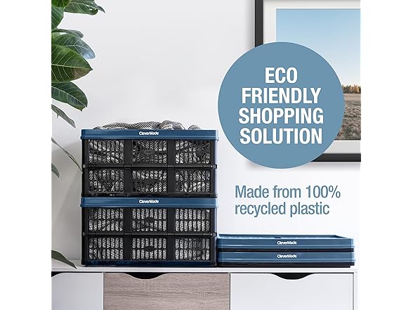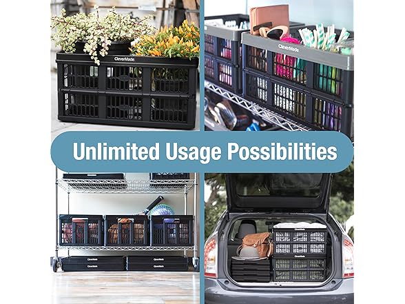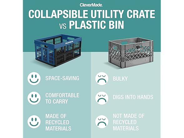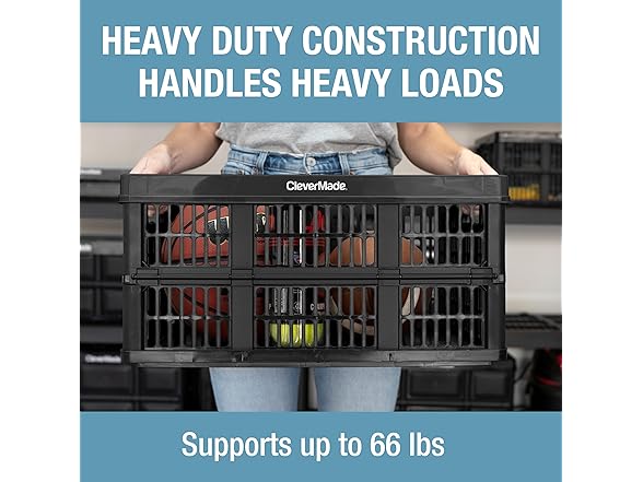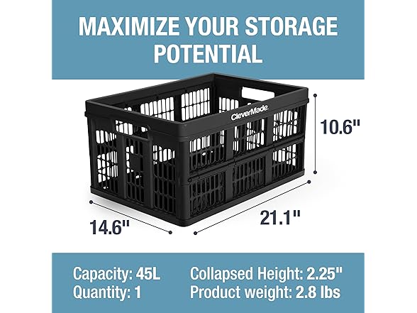 CleverMade Collapsible Utility Crates-Obsidian 1pck 45L / 11 Gal holds 66 lbs - Stackable Containers Heavy Duty Capacity Crates - Space-Saving Baskets