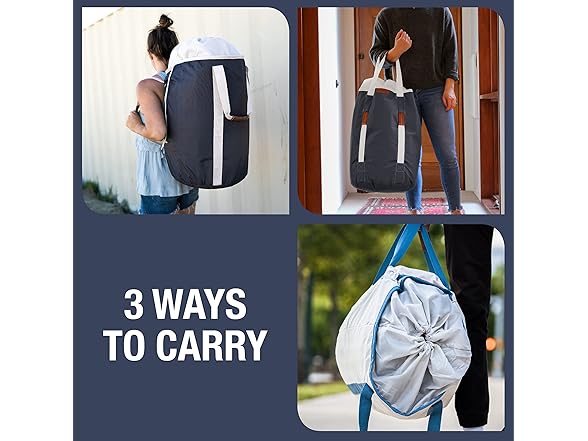 - VERSATILE CARRY OPTIONS - Transport up to 2 loads of laundry as a backpack, duffel bag, or carry tote; ideal for individuals going from their rooms to the laundry area.