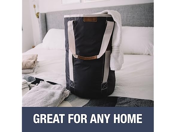 - COMPACT- When empty, simply fold it up and stuff it under the bed or inside the closet. When full of clothes, the hamper bag stands upright and can be stored in any room of the house