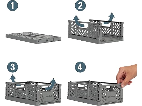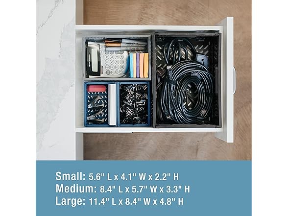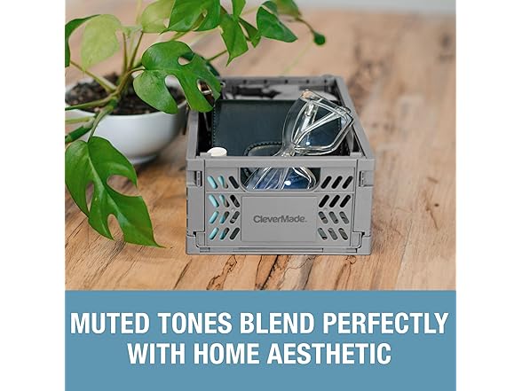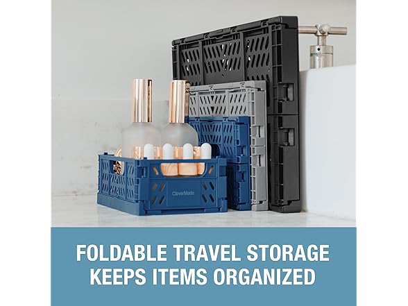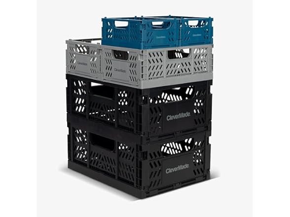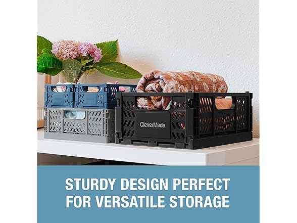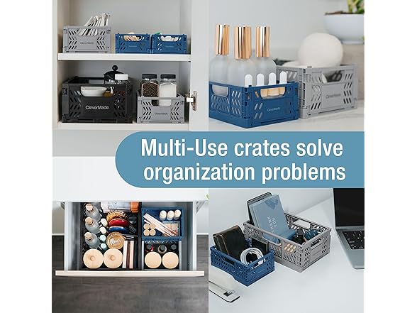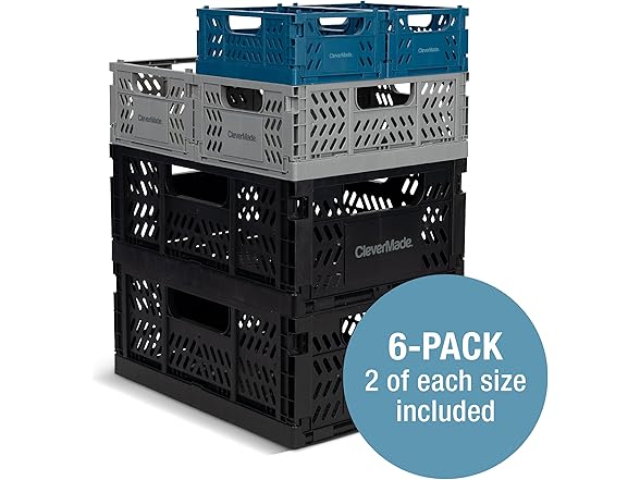 CleverMade Mini Collapsible Crates, 6-Pack Storage Bins, 3 Sizes, Blue/Gray/Black