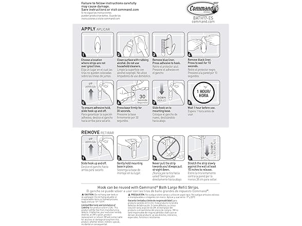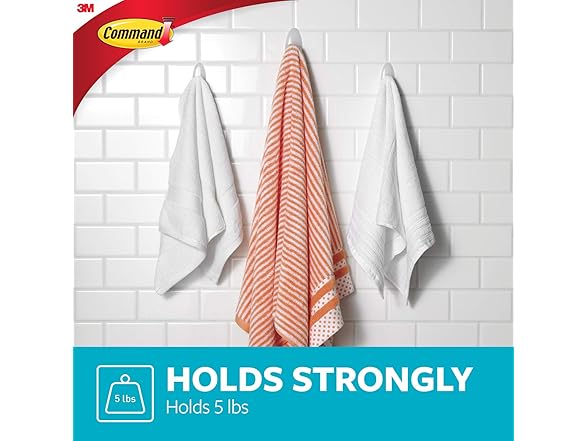 Command BATH17-ES-E 051141958392 Towel, Clear Frosted, 1-Hook, 1-Large Water-Resistant Strip (BATH17-ES), 1